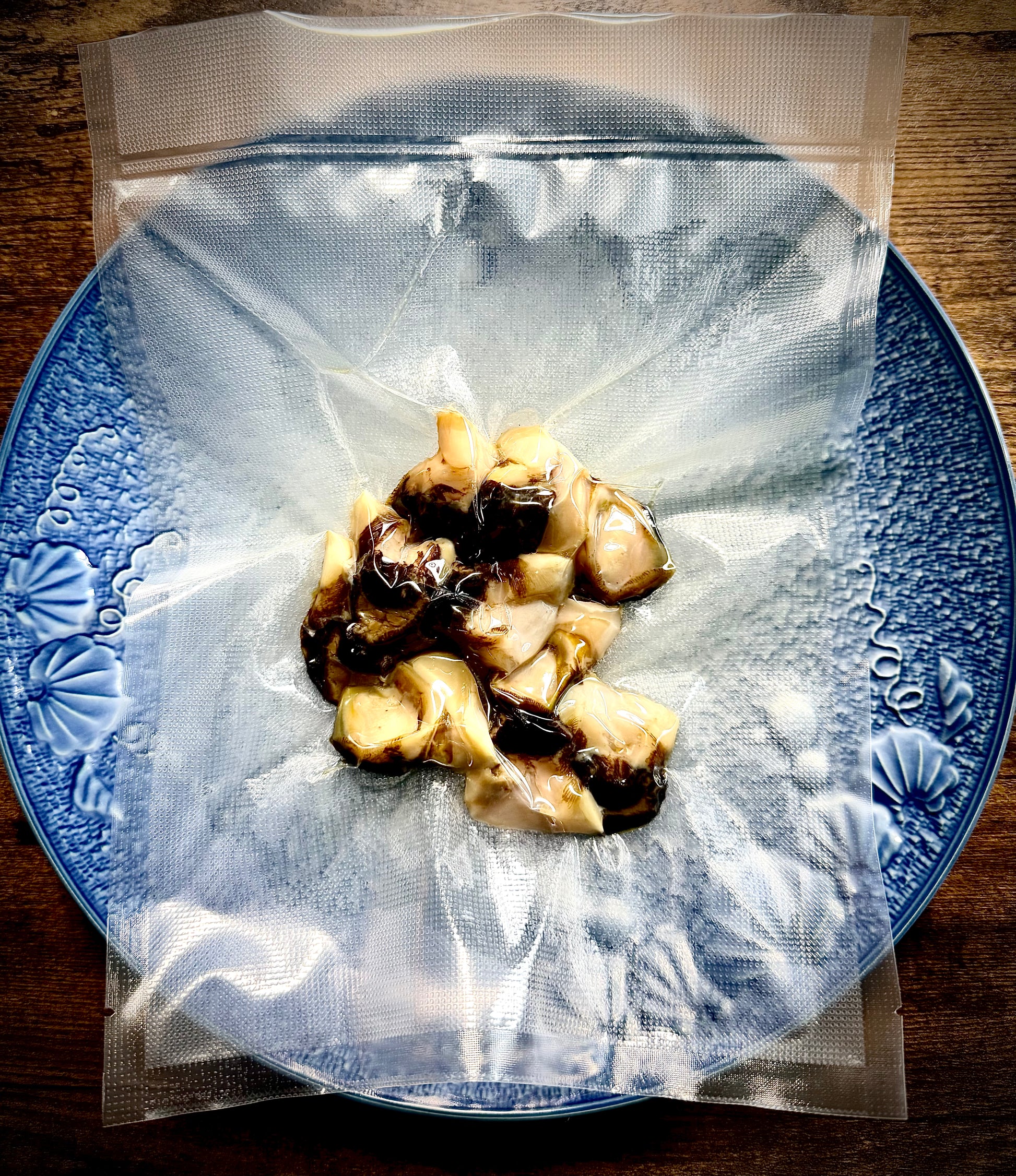 津軽海峡の朝獲れ大型サザエをさっと蒸してやわらかく仕上げました。殻からきれいに身をはずしてあるので、わずらわしい仕込み時間を節約できます。お試しサイズも用意しました。