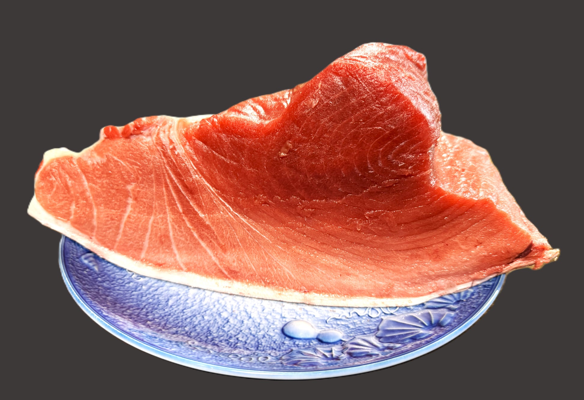 大間沖水域で獲れた一本釣りクロマグロ。あのアオリイカを好むこの水域のマグロは旨みは濃く、中トロの脂はスッキリ。津軽海峡の王者です。獲れてから3日寝かしたと-60℃急速冷凍。