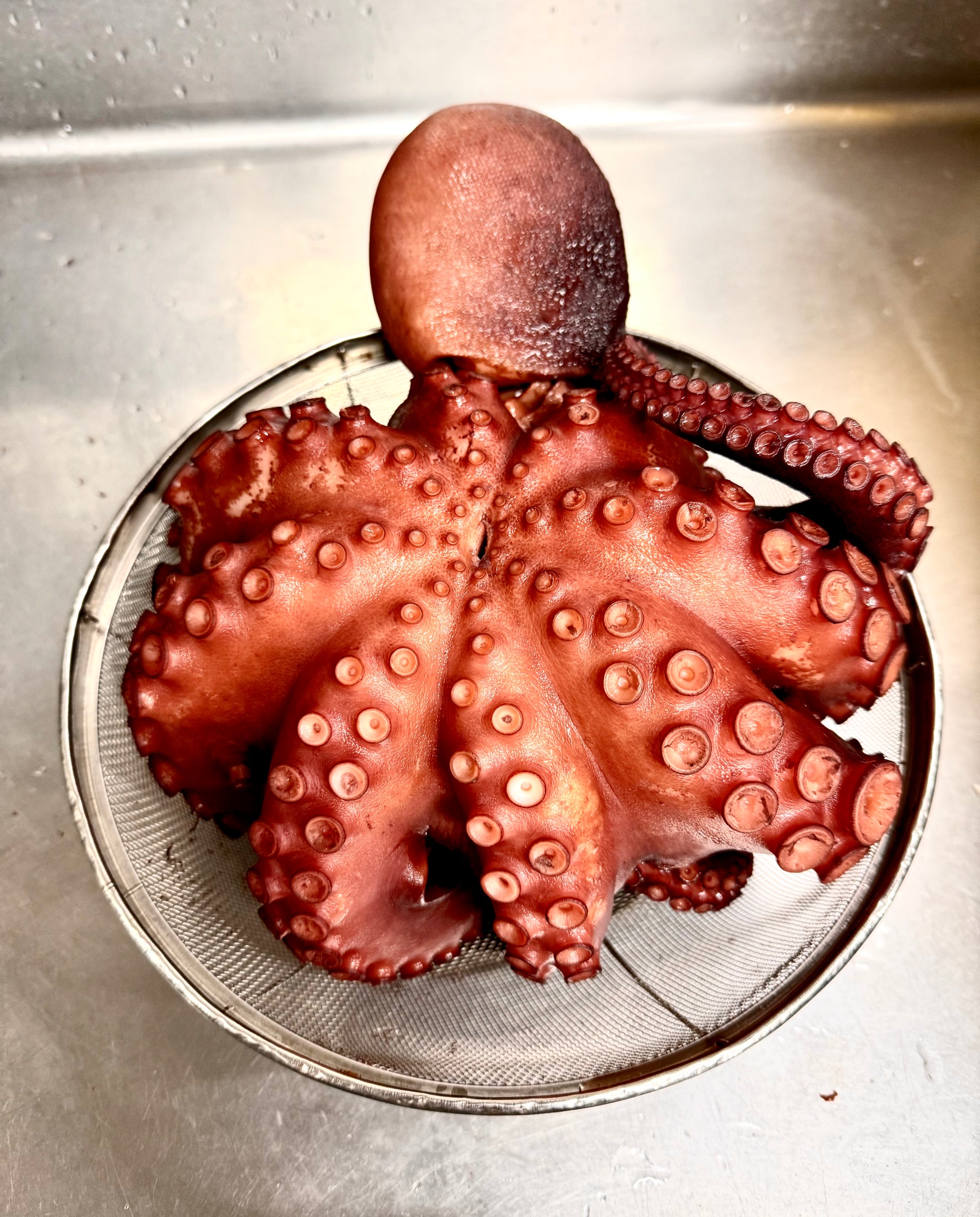 津軽海峡の冬の真タコ入荷!デカいです!身のしまりと旨味は半端でないです! 何もつけずに、まずは食べてもらって、その後はお好みで! オリーブオイルとの相性抜群!刻んだネギにゴマ油あえも抜群!