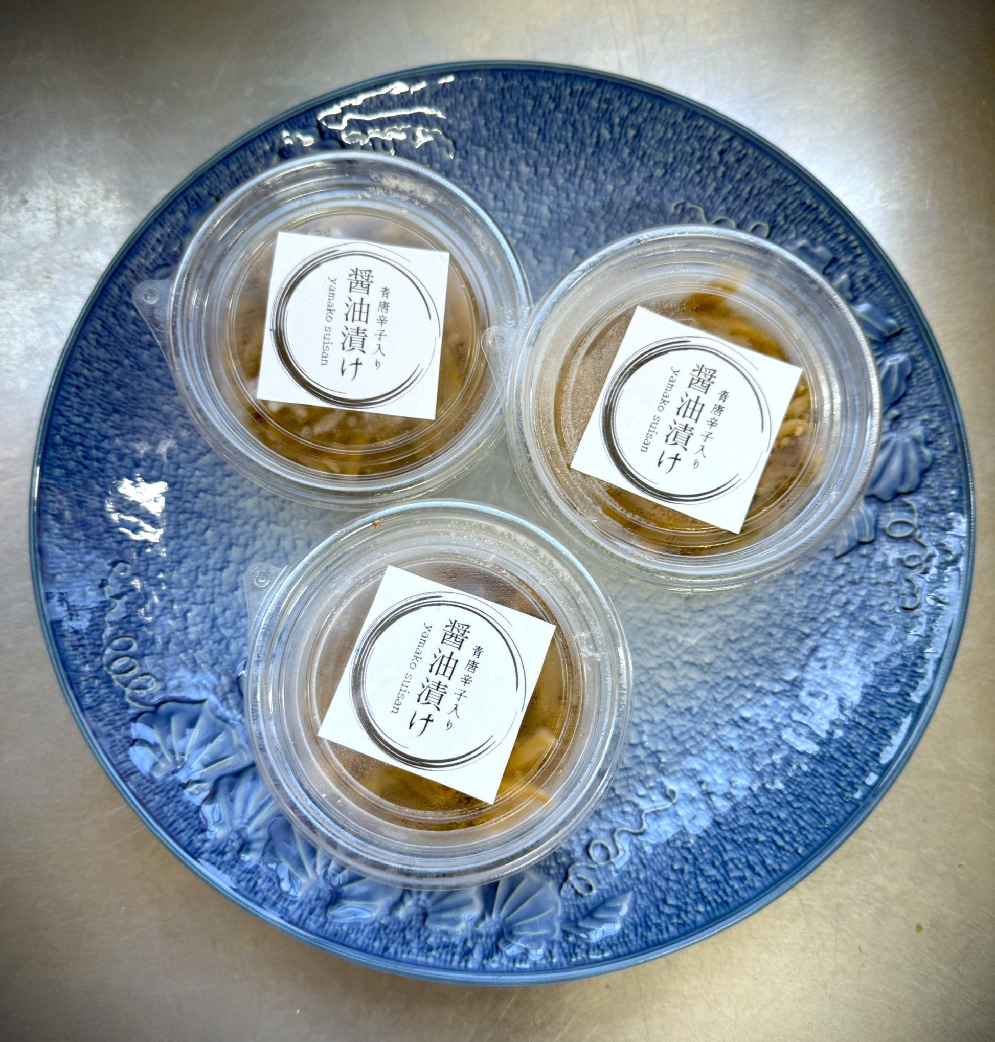 船上にて加工された真イカの醬油漬けは、青唐辛子入りで、程よい辛味と自然の風味は絶妙です。締めの出汁茶漬けは癖になります。